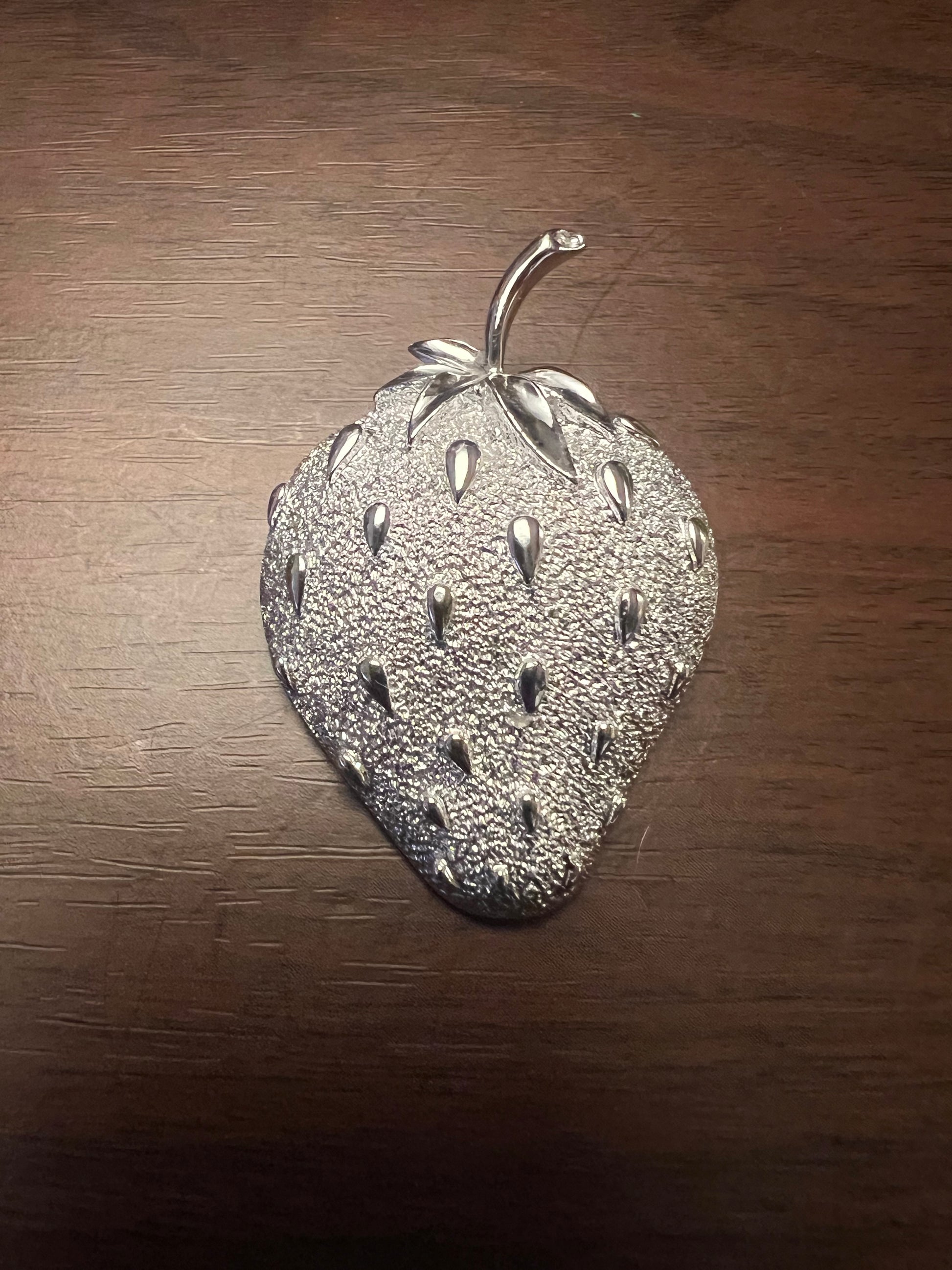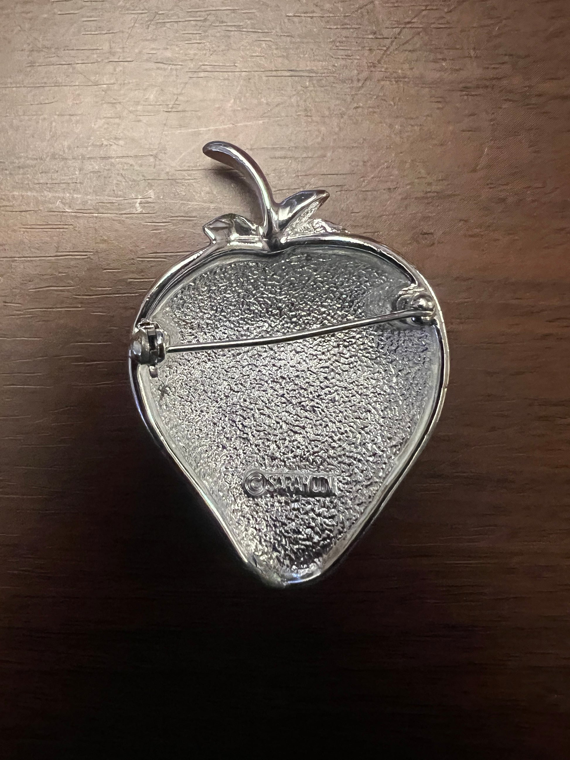 This vintage Sarah Coventry strawberry brooch, also known as the "Strawberry Ice" design from 1968, is a must-have for any collector or lover of vintage jewelry. Made of silver-toned metal, it is in good condition and adds a touch of retro charm to any outfit.